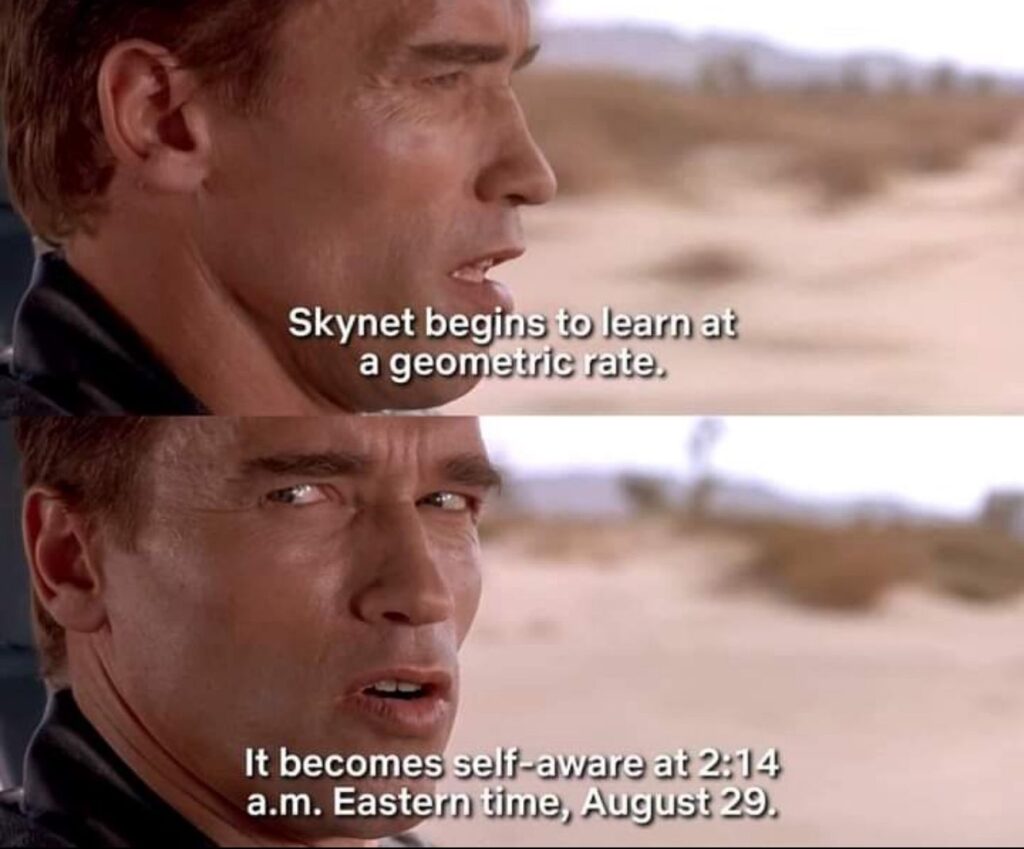 Why haven’t I seen this today… Ralph Aboujaoude Diaz , Lasse Rindom where are the memes! In the Terminator film series, 𝐒𝐤𝐲𝐧𝐞𝐭 𝐛𝐞𝐜𝐨𝐦𝐞𝐬 𝐬𝐞𝐥𝐟-𝐚𝐰𝐚𝐫𝐞 𝐨𝐧 𝐀𝐮𝐠𝐮𝐬𝐭 𝟐𝟗, 𝐚𝐭 𝟐:𝟏𝟒 𝐀𝐌 𝐄𝐃𝐓. Sure in the movie 🍿 it was said the date was 𝟙𝟡𝟡𝟟… yet someone had to have dropped something interesting today. If anyone saw […]