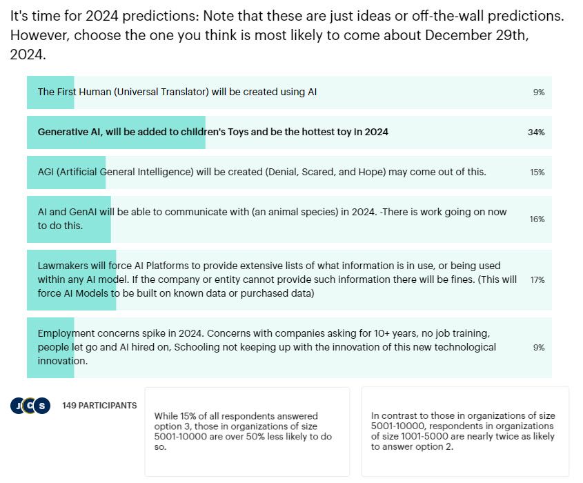 The below 2024 predictions are voted on by 149 Gartner Peer Ambassadors who in their area and given their expertise are well-rounded experts. It’s interesting to see that overall many are taking the middle-of-the-road approach or are we looking at the normal rate of adoption here? 𝐃𝐨 𝐰𝐞 𝐫𝐞𝐪𝐮𝐢𝐫𝐞 𝐭𝐨𝐲𝐬 𝐚𝐧𝐝 𝐞𝐧𝐭𝐞𝐫𝐭𝐚𝐢𝐧𝐦𝐞𝐧𝐭 𝐭𝐨 𝐩𝐮𝐬𝐡 𝐮𝐬 […]